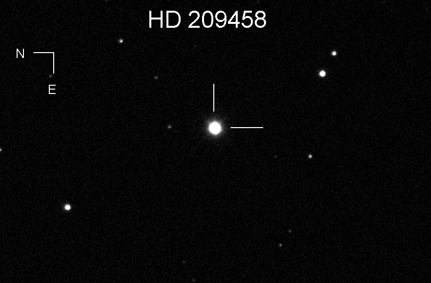 The exosolar planet HD209458b was inferred by the detection of stellar wobble.  This discovery was made by Marcy and Butler of the Carnegie Institute on Nov 4, 1999.  The exosolar planet was first detected by photometry on Nov 7, 1999 by Greg Henry of Tenn. State Univ.  Although the estimated diameter of the planet is 1.6 times that of the gas giant Jupiter, the density is only 63% that of Jupiter, making the planet a gas giant, also.